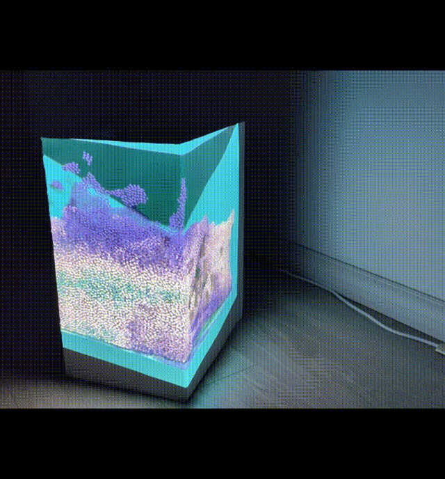 In this project, I tried to implement a physical simulation of water flow through NVIDIA Flex Solver, combined with a music driver and a stereo projection device for visualization and testing. My original intention was to utilize the real physical expressiveness of its particle system to simulate the dynamics of a water body with natural gravity and fluidity.